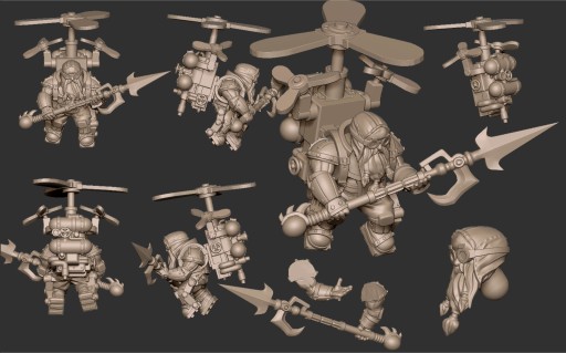 Przedmiotem sprzedaży jest zestaw modeli Sky dwarf Flying Unit od Kyoushuneko Miniatures.