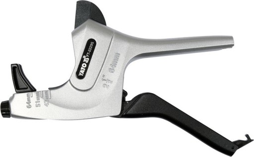 Nożyce do cięcia rur PVC i innych tworzyw sztucznych (PP, PE, PU) oraz peszli. Regulowany wspornik umieszczony na końcu ostrza, pomaga pozycjonować rury o średnicach 40, 50 i 63 mm, co poprawia skuteczność cięcia. Wysokiej jakości ostrze ze stali SK5. Ostrze pokryte powłoką PTFE poprawiającą płynność cięć. Nożyce stosowane do prac hydraulicznych, instalacyjnych, budowlanych.