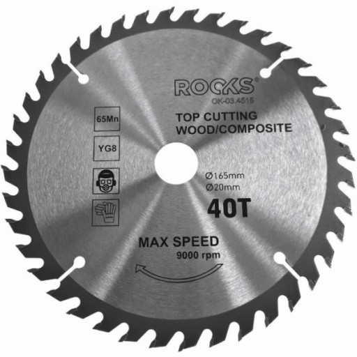 TARCZA DO ELEKTRYCZNEJ PIŁY ROOKS OK-03.4010 MAJĄ ŚREDNICĘ 165 MM, MOCOWANIE 20 MM I PRĘDKOŚĆ OBROTOWĄ 5000 OBROTÓW NA MINUTĘ. TARCZE WYPOSAŻONE SĄ W ZĄB Z WĘGLIKIEM SPIEKANYM 65MN-YG8 O GRUBOŚCI 2,2, MM. IDEALNE DO CIĘCIA DREWNA O RÓŻNYM STOPNIU TWARDOĆCI.