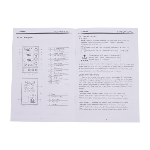 C.V: stabilność napięcia ≤ 0,1%+ 3 mV; stabilność obciążenia ≤ 0,1%+ 3 mV; hałas falowania: ≤ 20 mvrms (wartość efektywna).