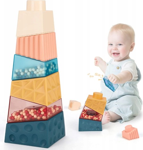 WIEŻA SENSORYCZNA PIRAMIDA MONTESSORI UKŁADANKA KLOCKI + SPINNER GRATIS