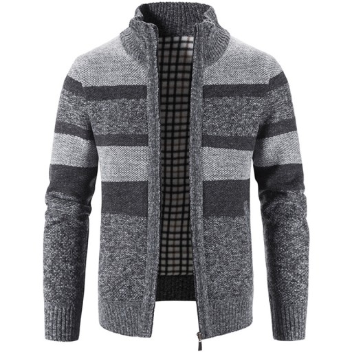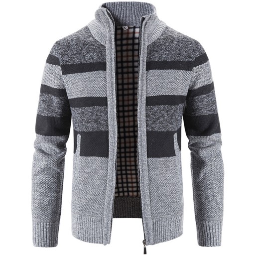 Men's Cardigan Striped Color-blocking Zipper Sweater Jacket Casual Long-sleeved Stand-collar Knitted Sweater Coat Male Clothing