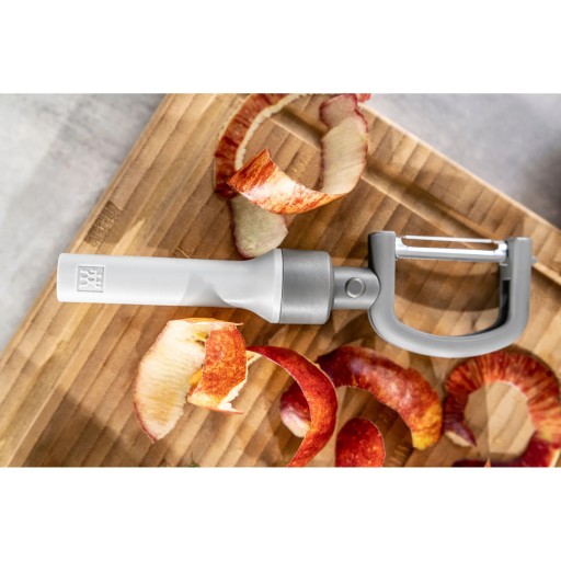 Obieraczka 2 w 1 ZWILLING Z-Cut daje możliwość używania jej jako obieraczki wzdłużnej - do obierania okrągłych produktów takich, jak ziemniaki czy jabłka, oraz poprzecznej - do szparagów, ogórków i innych długich warzyw, czyni ją wielozadaniowym pomocnikiem przy niemal każdej czynności w kuchni.