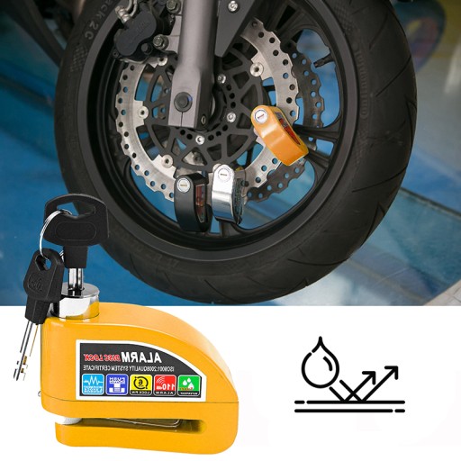 Blokada tarczy to praktyczne rozwiązanie dla motocyklistów, aby chronić swoje motocykle lub rowery podczas parkowania na zewnątrz. Alarm włączy się automatycznie po wykryciu wibracji lub wstrząsu, dzięki czemu Twoje rzeczy będą bezpieczne. Pasuje do różnych pojazdów z hamulcami tarczowymi do 6 mm: motocykle, elektromobile, rowery, moto, skutery itp.