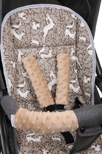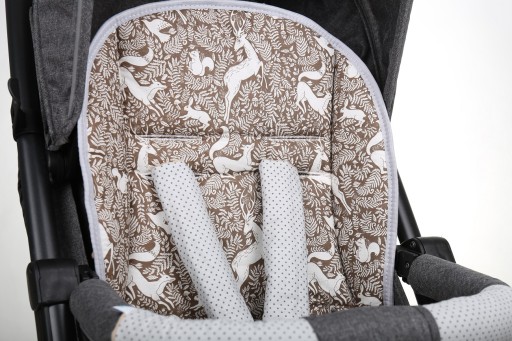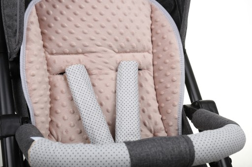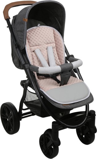 Wkładka jest wykonana z atestowanych materiałów najwyższej jakości. Po założeniu pasów, wkładka dopasuje się do wózka, nie przesuwa się.