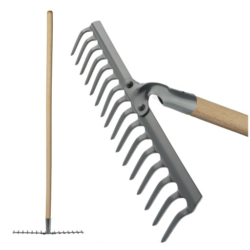 Nie tylko do zbierania siana - te grabie mogą być również przydatne w wielu innych pracach ogrodniczych, takich jak równanie podłoża, rozprowadzanie mulczu, czy zbieranie liści i kamieni.