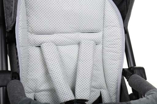 Wkładka jest wykonana z atestowanych materiałów najwyższej jakości. Po założeniu pasów, wkładka dopasuje się do wózka, nie przesuwa się.