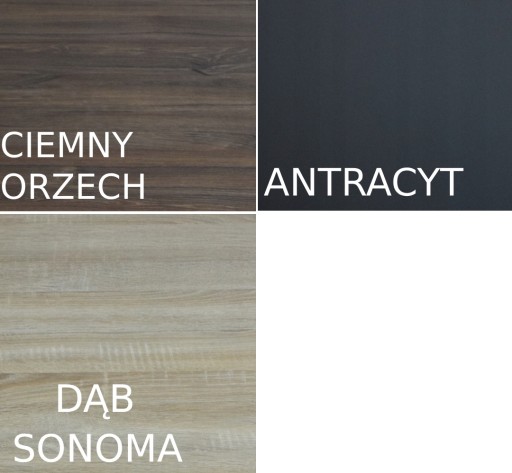 Blat stołu dostępny jest w kolorze antracytowym, dąb sonoma oraz ciemny orzech . Posiada lekko zaokrąglone brzegi.