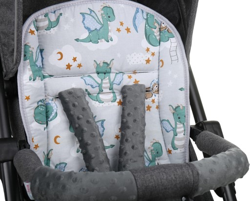 Miękka, dwustronna wkładka, która zapewni wygodną podróż Twojemu Maluszkowi, chroniąc przy tym wózek przed zabrudzeniami i zużyciem wnętrza. Podczas letnich spacerów bawełniana strona zapewni ochronę przed nieprzyjemną tapicerką wózka, a w zimowe dni milutki minky pomoże utrzymać odpowiednią temperaturę.