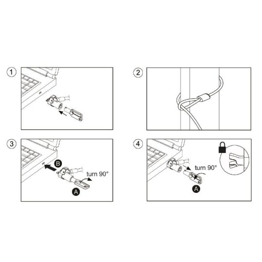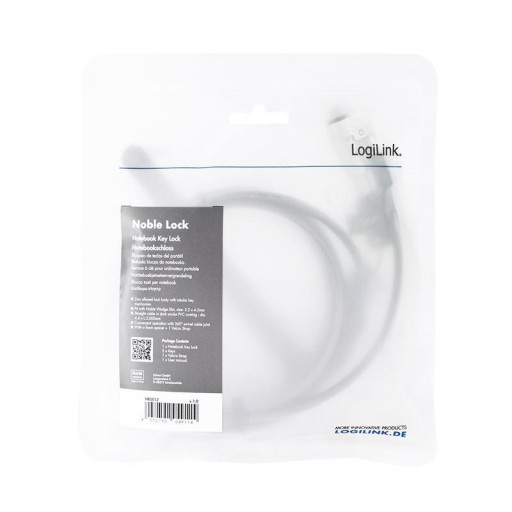 - Pozostałe parametry: Zabezpieczenie laptopa Noble-Lock przed kradzieżą, Mocowanie do notebooka w gnieździe Noble Wedge Lock w laptopie (pasuje do gniazda Noble Wedge o wymiarach 3,2 x 4,5 mm), Z obrotem 90 ° i kablem obracającym się o 360 ° - zapewnia dużą swobodę ruchów, eliminuje niewygodne kąty i umożliwia wygodne wkładanie klucza nawet w najcieńszych laptopach, Wytrzymały drut stalowy, Powłoka ochronna PVC, Zamek z kluczem,