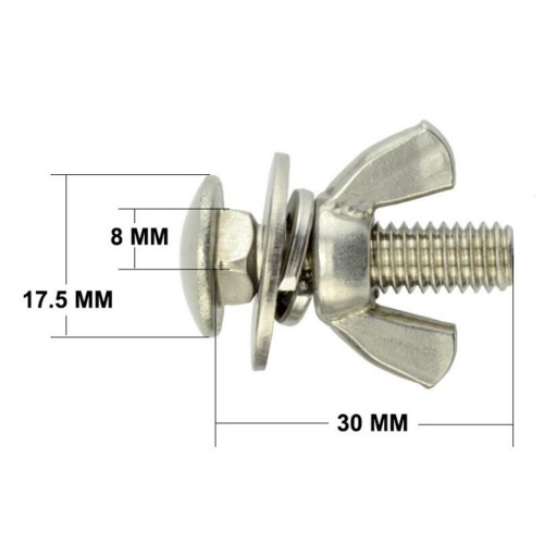 Śruby motylkowe Nakrętki motylkowe, można dokręcać ręcznie, bez użycia narzędzi.
