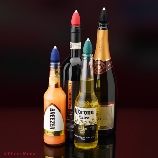 Zestaw 4 korków zabezpieczający wino przed nadmiernym napowietrzeniem poprzez szczelne zamknięcie butelki, ich kształt pozwala z łatwością się nimi posługiwać.