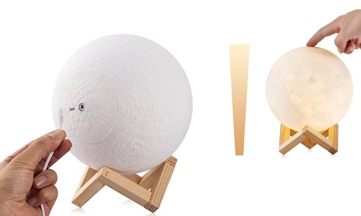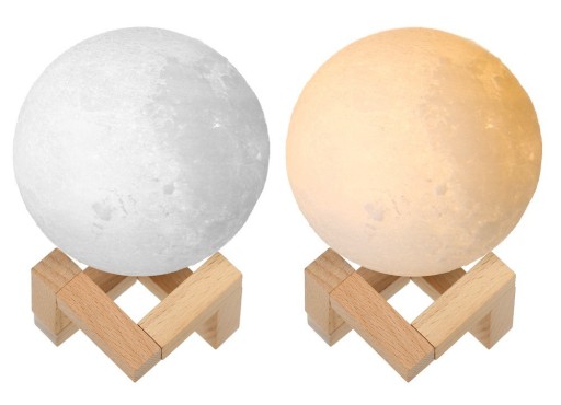 Lampka imitująca Księżyc jest doskonałą, uniwersalną dekoracją, która nada się do każdego wnętrza, niezależnie od stylu czy funkcji użytkowej. Np. sypialni, pokoju dziecięcego czy salonu. Do zestawu dołączony jest drewniany stojak, który ochroni akcesorium przed upadkiem oraz nadaje klasycznego, a jednocześnie designerskiego wyglądu. Obsługiwana jest za pomocą dotyku. Wystarczy, że dotkniesz jej spodu a kolor zmieni się automatycznie. Lampka posiada 2 tryby ciepły i zimny.