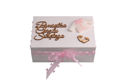 - na wieczku napis ze sklejki ,,Pamiątka Chrztu Świętego'' wycinany wysokiej klasy laserem,