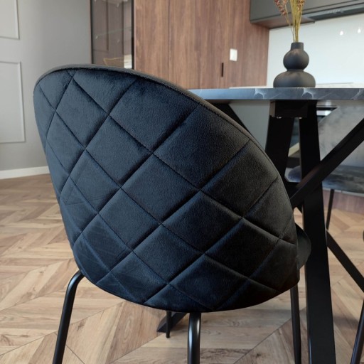 Krzesło welurowe Fargo Velvet czarne Przeznaczenie: salon, butik, garderoba | Kolory: czarny Unikalne krzesło Fargo wyróżnia się nowoczesnym designem i nietuzinkowym połączeniem miękkiego weluru oraz metalowych nóg. Wykonane z najwyższej jakości materiałów, z dbałością o każdy detal, z pewnością przyciągnie uwagę swoim geometrycznym, pikowanym wzorem w kształcie rombów. Krzesło Fargo to nie tylko designerski element dekoracyjny, ale także bardzo wygodne meble, idealne do nowoczesnych wnętrz w stylu loftowym i nowoczesnym. Doskonale sprawdzi się w salonach, restauracjach, ekskluzywnych sklepach, salonach kosmetycznych/fryzjerskich, eleganckich biurach czy punktach informacyjnych. Połączenie weluru i metalowych nóg doda pomieszczeniu nutę elegancji i niepowtarzalnego charakteru. Cechy produktu Obicie wykonane z miękkiej przyjemniej w dotyku aksamitnej tkaniny welurowej Nogi metalowe z ochronnymi podkładkami w kolorze czarny mat Odcień materiału zmienia się wraz z ułożeniem włosia np. jak w skórze zamszowej. Dopuszczalna waga 120 kg Wymiary produktu Wysokość krzesła: 78 cm Szerokość krzesła: 50 cm Głębokość krzesła 54 cm Rozstaw nóg: 40 x 47 x 38 cm Wysokość siedziska: 47 cm Wysokość do dolnej części siedziska 43 cm Szerokość siedziska: 47 cm Głębokość siedziska: 44 cm Szerokość oparcia 50 cm Wysokość oparcia: 34 cm Grubość nogi: 1,9 cm Informacje dodatkowe Przedstawione kolory należy traktować poglądowo - mogą odbiegać od rzeczywistych ze względu na różne ustawienia monitorów oraz proces obróbki zdjęć. Rzeczywiste wymiary mogą się różnić od podanych wyżej. Tolerancja błędów może wynosić +/- 5%. Na ostatnich grafikach zaprezentowano prawidłowy montaż nóg. Przednie nogi w krześle można dodatkowo wyregulować w zakresie poziomu. Producent: eHokery Kod produktu: 060058MG Kod EAN: 5905523060058 Kolor: czarny Wysokość: 78 cm Wysokość oparcia: 34 cm Grubość nogi: 1,9 cm Szerokość krzesła: 50 cm