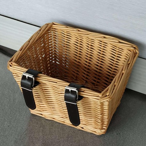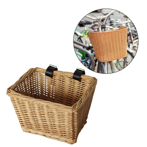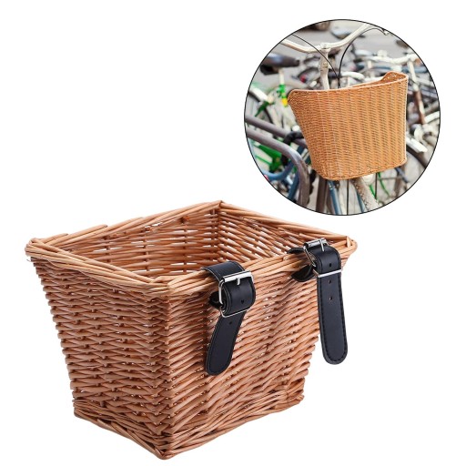 Kosz rowerowy: Kosz na z ręcznie robionym i wykonanym z wikliny, ze skórzanymi paskami do mocowania
