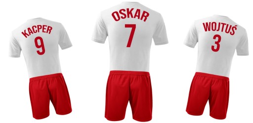 Strój piłkarski reprezentacji Polski dla dziecka! Komplet z getrami + gwizdek + plecak + TWÓJ NADRUK