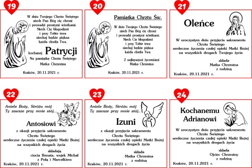 - Prześlij w wiadomości do sprzedającego imię maluszka, informację kto jest darczyńcą oraz wybrany wzór i kolor tabliczki.