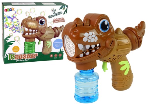 Zabawka jest podobna do małego dinozaura, spustem do uruchamiania baniek jest łapka. Z paszczy natomiast będzie wylatywać tysiące baniek. Automat do robienia baniek, posiada aż 10 oczek, przez które wylatują banieczki. Dlaczego warto wybrać taką maszynę? Ponieważ w czasie, w którym człowiek przy użyciu klasycznego zestawu jest w stanie zrobić tylko jedną bańkę, maszyna może zrobić ich setki.