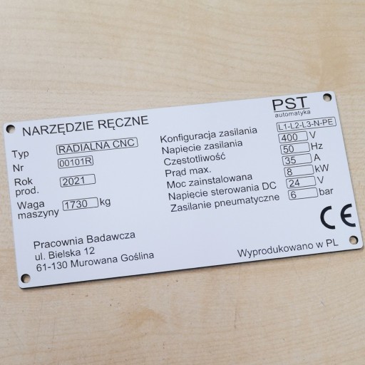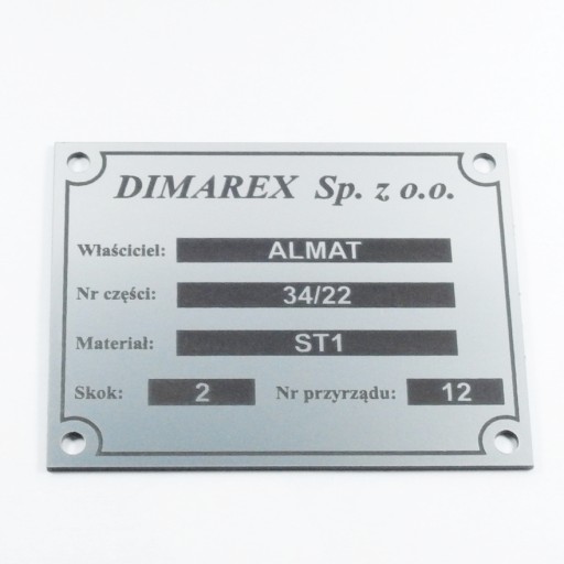 tabliczki grawerowanej na laminacie grawerskim (dwuwarstwowe tworzywo sztuczne) o grubości 1,6 mm.