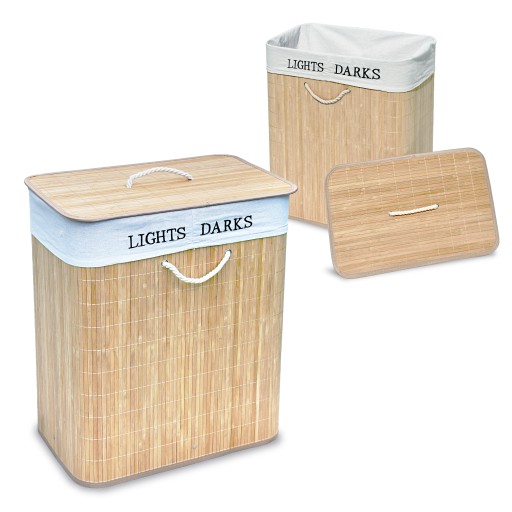 БАМБУКОВАЯ КОРЗИНА ДЛЯ БЕЛЬЯ, ДВУХКОМБОННЫЙ КОНТЕЙНЕР, 100 Л