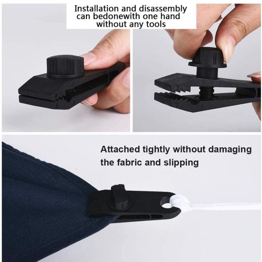 Łatwy w instalacji lub demontażu, wystarczy dokręcić lub poluzować pokrętło śruby, aby wyregulować grube lub cienkie plandeki.
