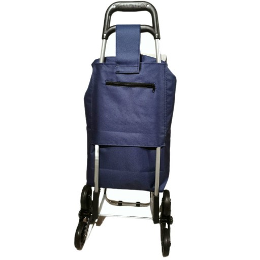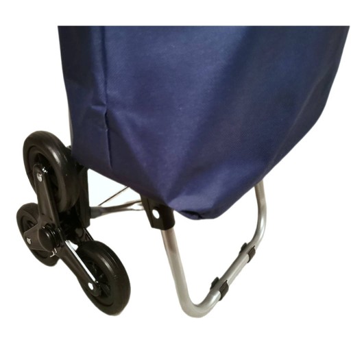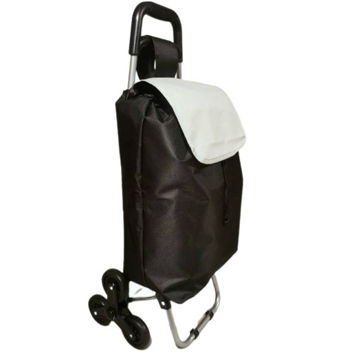 Wygodna torba na zakupy na stelażu z kółkami wersja - 3 kółka - doskonała na schody! Wykonany z trwałego materiału, wodoodporny poliester, lekki, składany stelaż. Duża pojemność - pomieścisz wszystko! Kieszonka na zamek. Łatwo zdejmowane kółka. Nieprzemakalny materiał PE. Antypoślizgowe podkładki. Obrotowe podwójne kółka sprawiają, że wózek sam zjeżdża po schodach - bez podnoszenia! Wózek na zakupy na kółkach to wspaniałe narzędzie pomocne przy codziennych zakupach oraz w sytuacjach typu targi, szkolenia itd. dzięki wózkowi nasz kręgosłup i my sami odpoczywamy a transport produktów nie stanowi już problemu.