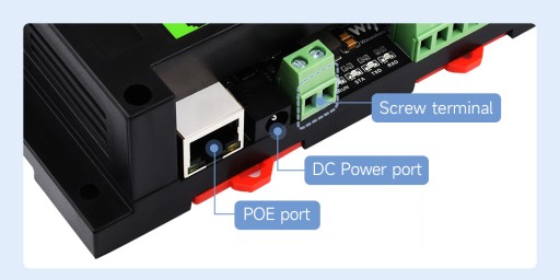 - POWER SUPPLY PoE port, DC 5.5*2.1 power port, or Screw terminal (7~36V)
