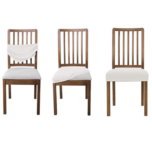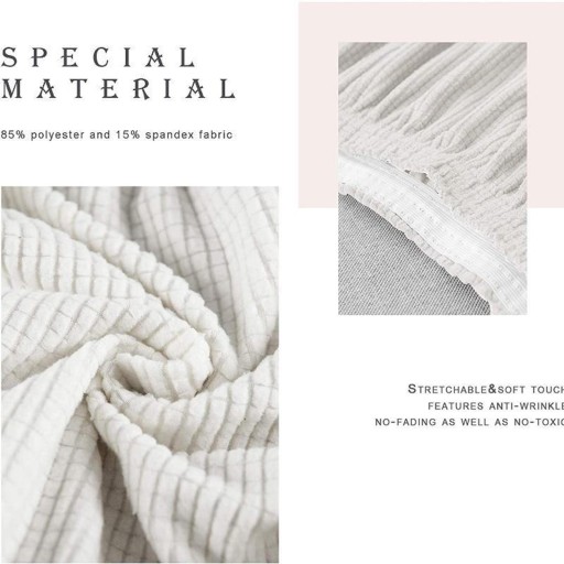 Miękkie i zastosowane: jeden rozmiar części do składu poszczególnych członków, siedzisko przed plamami, zalaniem, zwierzętami, zadrapaniami lub łzami bez odchylenia stylowego oparcia krzeseł. Wykonany w 85% z poliestru % spandexu z drobnym żakardowym systemem w kratkę, który zapewnia krzesłu do jadalni niezmiennie nowoczesny wygląd.