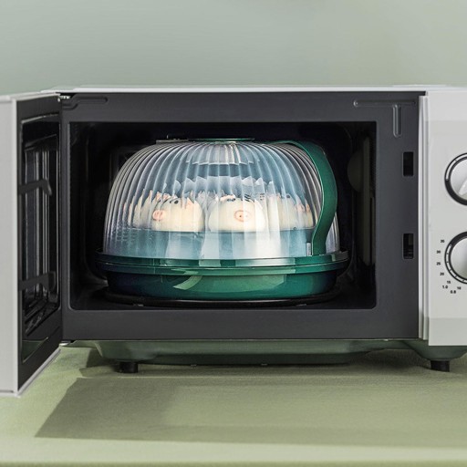 [Dwuwarstwowa duża pojemność]: Kuchenka mikrofalowa o dużej pojemności, dwuwarstwowa, może pomieścić około dziesięciu bułek Zalecany czas 3 minuty. Spiralne otwory do gotowania na parze, jedzenie gotuje się szybko. Obrotowy odpowietrznik, obróć, aby zmienić rozmiar odpowietrznika.