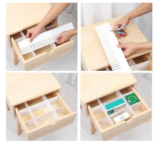 ♦️ Organizer jest bardzo prosty w użyciu, wystarczy odmierzyć pożądaną długość przegrody i przełamać ją w najcieńszym miejscu lub przeciąć za pomocą noża.