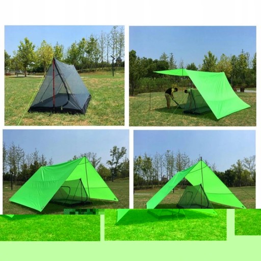 z kieszenią do przechowywania i kołkami do ziemi oraz linami do łatwego przenoszenia z małym schowkiem z haczykami na światła kempingowe, zapięciem drzwiowym, zamkiem błyskawicznym i wodoodpornym dnem