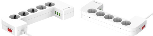 Pozwala na wpięcie obok nawet dużych wtyczek 230V