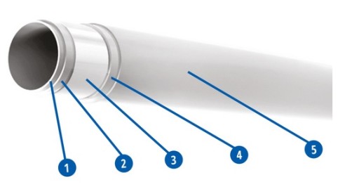 • brak osadów: wewnętrzna warstwa z tworzywa sztucznego jest bardzo odporna na tworzenie się osadów wapiennych, brudu oraz substancji powstających w wyniku galwanicznej korozji.