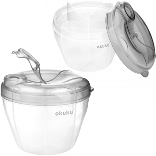 Naczynie dedykowane jest do przechowywania mleka modyfikowanego. Ułatwia precyzyjne odmierzenie porcji na cztery karmienia (jedna komora pomieści do 8 miarek mleka). Specjalny dozownik w wieczku usprawnia szybkie nakładanie mleka do butelki.