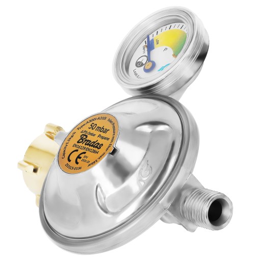 Reduktor gazowy 50 mbar, 1,5 kg/h z zaworem awaryjnym i wskaźnikiem, na wąż 1/4"
