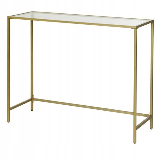 Stolik wykonany ze szkła i żelaza malowanego proszkowo na kolor złoty. Produkt tworzy niesamowitą dekorację Twojego salonu czy przedpokoju.