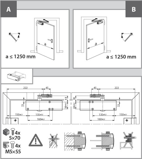 Do drzwi rozwieranych 1-skrzydłowych o szerokości skrzydła do 1250 mm