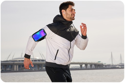 ✅ Etui z serii Neon współgra ze stylem nowoczesnej odzieży sportowej, szczególnie dlatego, że armband wykonany jest z tych samych materiałów!