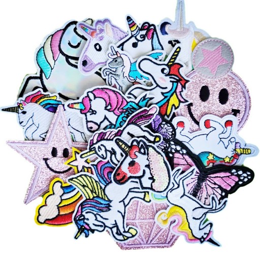 20 różnych naszywek w zestawie, każda ma inny kształt a rozmiar