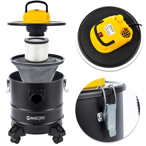 Odkurzacz wyposażony jest w żaroodporną aluminiową rurkę do zaciągania pyłu, żaroodporny zbiornik, giętki wąż wykonany z bardzo trwałego materiału wypełnionego metalową, spiralną i żaroodporną konstrukcją, Odkurzacz posiada wygodny uchwyt do przenoszenia oraz filtr HEPA, który zabezpieczy możliwość wentylowania wciąganego pyłu lub kurzu.