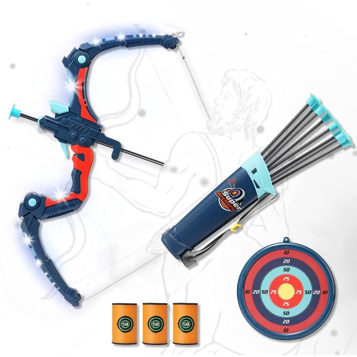 FAJNE EFEKTY OŚWIETLENIA: ekscytujący zestaw łuków i strzał ma automatyczny system oświetlenia, łuk zapala się automatycznie po strzelaniu, dodając dodatkowy poziom zabawy.