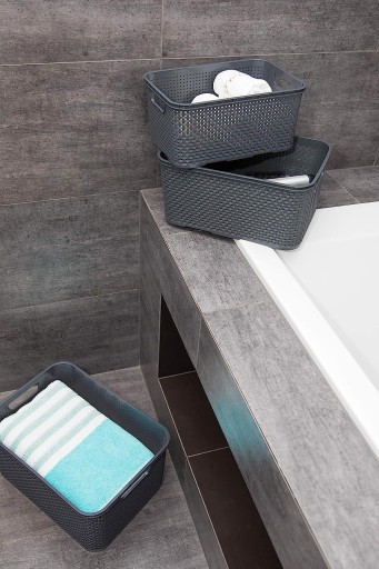 ✅ BRANQ - Koszyk plastikowy - Rattan - Pudełko - Pojemnik - antracytowy - 32x22x15 cm - 10 L