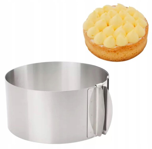 Metalowa opaska do formowania tortu. Wyposażona w możliwość regulowania średnicy od 16 do 30 cm. Zastosowanie specjalnego stopu umożliwia szybkie nagrzewanie się formy oraz długo utrzymuje ciepło. Szczelna obręcz zapobiega wylewaniu się dodatków do ciasta poza formę. Solidne uchwyty umożliwiają łatwe otwieranie i zamykanie foremek. Wykonana ze stali nierdzewnej co zapewni długie i bezproblemowe użytkowanie.