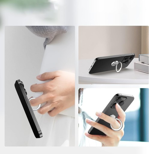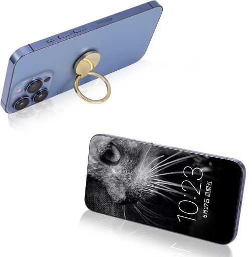 - Uchwyt na pierścień do telefonu może być używany jako stojak na telefon, dzięki niemu trzymanie telefonu w jednej dłoni staje się wygodniejsze niż do tej pory.
