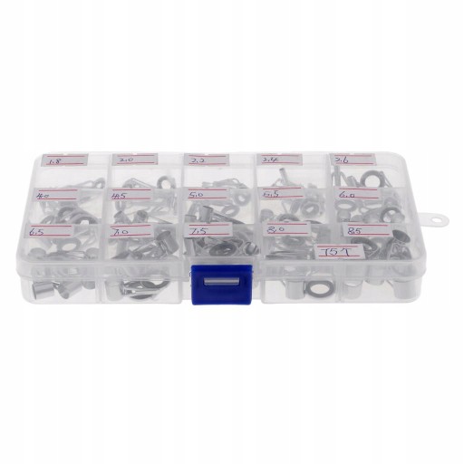 75-częściowa przelotka do wędek w 15 różnych rozmiarach.