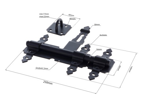 Zasuwa do bram i furtek, umożliwiająca zamknięcie na kłódkę, o nazwie WCZ 250. Jest to ciężka zasuwa wykonana ze stali, a jej powierzchnia została pomalowana proszkowo na kolor czarny. Oprócz swojej praktycznej funkcji, może także pełnić rolę dekoracyjną, dodając uroku Twoim bramom, furtkom, skrzyniom lub kufrom.