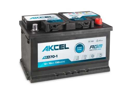 АККУМУЛЯТОР AKCEL, AGM СТАРТ СТОП 70Ач 720А
