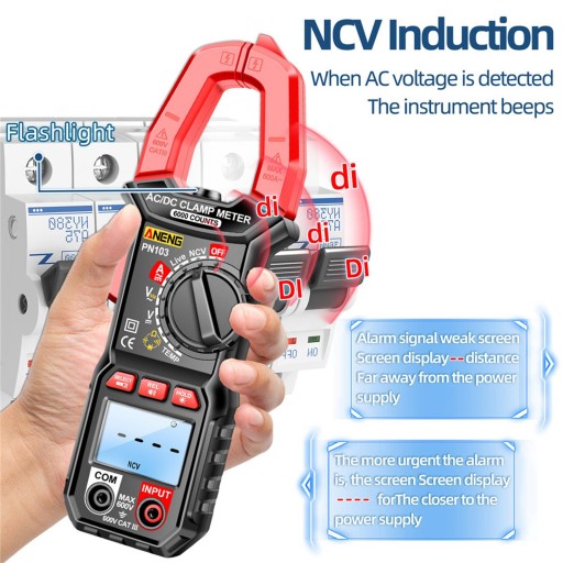 Wielofunkcyjny miernik cęgowy: ten multimetr może dokładnie mierzyć zakres testów napięcia stałego, prądu stałego, rezystancji, testu, testów diod.