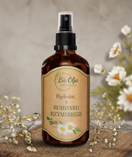 Hydrolat BioOlja pozyskiwany jest tylko ze świeżo zerwanych kwiatów, dzięki czemu, pełen jest zbawiennych dla skóry składników i wartości, które nie tylko pomogą Ci w utrzymaniu świetnej kondycji cery, ale również mają wpływ na Twoje samopoczucie. Ekologiczny hydrolat firmy BioOlja z rumianku rzymskiego jest doskonałym tonikiem do skóry tłustej lub trądzikowej. Łagodzi ukąszenia owadów i oparzeń słonecznych. Pomaga także łagodzić bóle mięśni i stany zapalne stawów. Jest doskonałym dodatkiem do kąpieli, wykazuje silne działanie uspokajające i antystresowe.